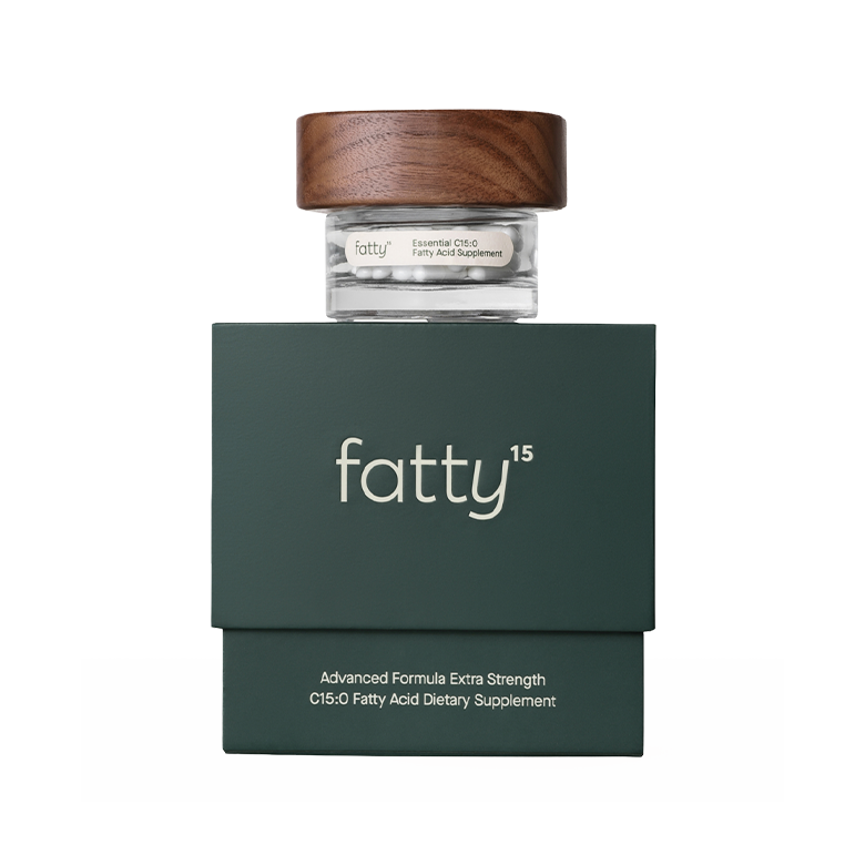 Fatty15TM Advanced Formula Extra Strength is a patented, high-dose, and science-backed C15:0 (pentadecanoic acid) supplement, exclusively provided by healthcare professionals, to optimize healthy aging. C15:0 is the first essential fatty acid to emerge in over 90 years, and Fatty15TM was developed by doctors and scientists to strengthen cell membranes against lipid peroxidation and reverse aging at the cellular level.*