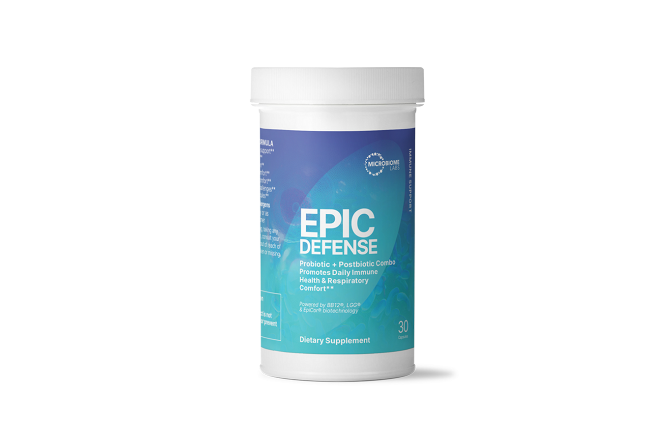 EpicDefense is a revolutionary probiotic and postbiotic blend designed for year-round immune resilience. This advanced formula optimizes immune balance, fortifies mucosal defenses, boosts antibodies and key immune-signaling cytokines, and promotes exceptional nasal and respiratory comfort—empowering patients to thrive through daily and seasonal challenges.*